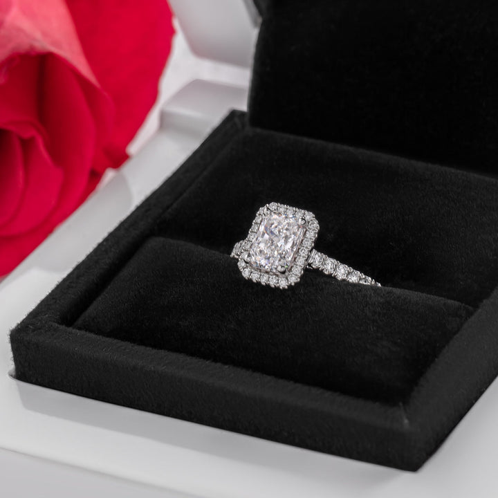 Emerald Cut Diamond Halo Style 3 Stone Ring - 0.92ctsRegular price €3,132.00Regular priceUnit price per-