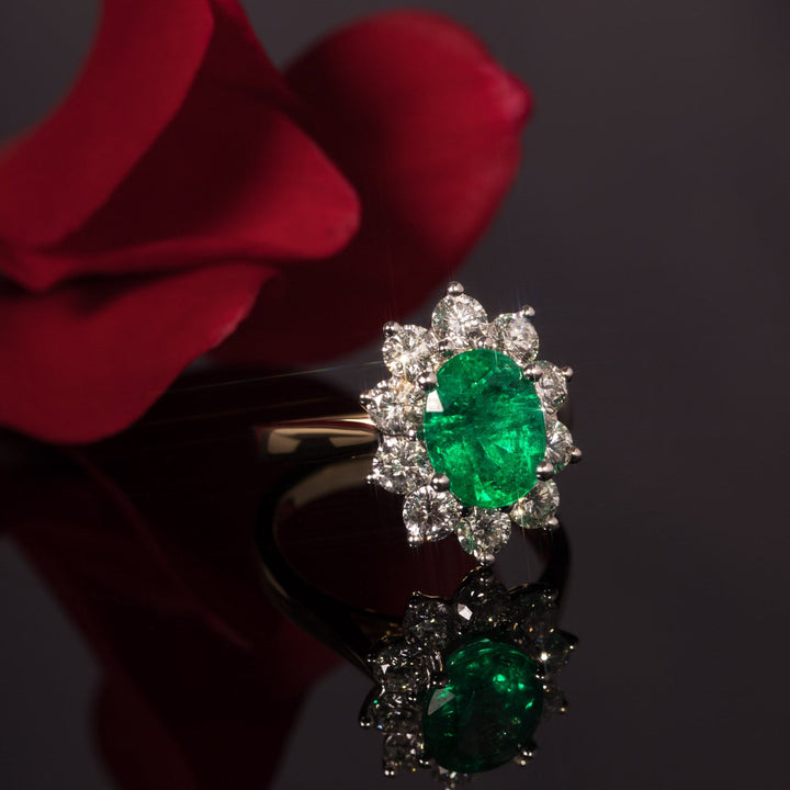 Emerald and Round Brilliant Cut Diamond Dress Ring