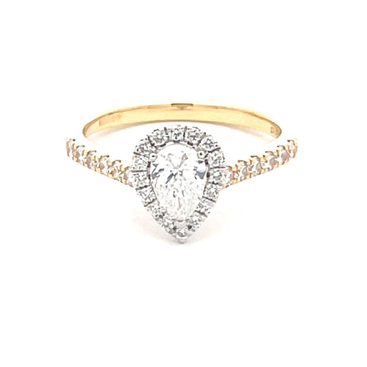 Pear shaped Aurora cut diamond halo style ring - 0.89cts