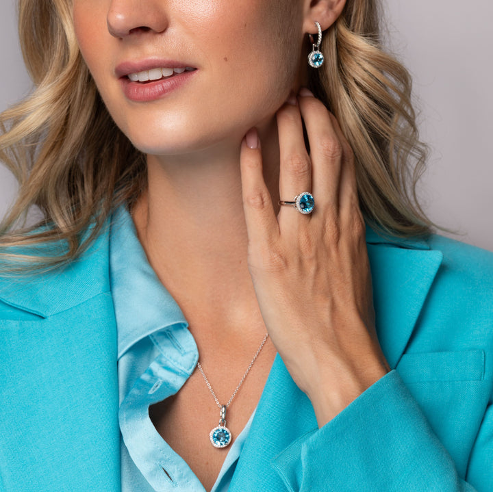 Nova pendant attachment in a plain bezel setting with round London Blue Topaz