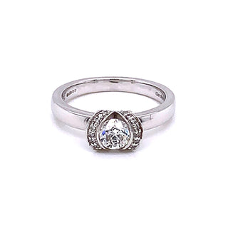 This elegant platinum ring showcases a round brilliant cut diamond at its heart, complemented by a sophisticated half halo of sparkling diamonds that frame and enhance the centre stone. The brilliant cut maximises light performance, delivering exceptional sparkle and fire. Crafted in platinum for superior durability and a lustrous white finish, this design offers timeless appeal with contemporary styling. Perfect for engagements or as a significant milestone piece, the halo setting adds visual impact whilst the quality metalwork ensures lasting beauty.