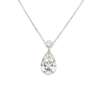 Elevate your jewellery collection with this sophisticated diamond pendant, featuring a total of 1.90-carat lab-grown diamonds in a striking round brilliant and pear cut combination. Crafted from premium 18ct white gold, this piece combines contemporary elegance with timeless appeal. The expertly set stones showcase exceptional brilliance and clarity, whilst the refined drop design creates a graceful focal point. Suspended from an 18-inch diamond set adjustable chain, this pendant offers versatile styling for both everyday wear and special occasions. A testament to modern luxury and ethical sourcing.