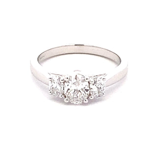 Expertly crafted in gleaming platinum, this Oval Shaped Diamond 3 Stone Ring boasts a 0.61ct centre diamond and 1.01cts in total. The three oval shaped diamonds are beautifully set in a 4 claw setting, making it wedding band friendly. Elevate any outfit with this stunning and timeless piece of jewellery.