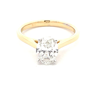 This exquisite oval diamond solitaire showcases a 1.51ct stone of G colour and VS2 clarity, certified by IGI. The diamond is elegantly presented in a four-claw platinum setting that provides secure, minimalist support, allowing the stone to command attention. Crafted from 18ct yellow gold, the band offers warmth and durability, creating a sophisticated contrast with the platinum setting. The oval cut maximises the diamond's brilliance whilst offering a distinctive alternative to traditional round stones. A timeless investment piece that transcends trends, this ring combines technical excellence with refined aesthetics for the discerning wearer.