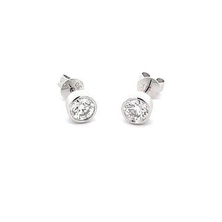 These exquisite Round Brilliant Cut Diamond Rub-over Style Solitaire Earrings feature 0.60cts of round brilliant cut diamonds set in 18ct white gold with a rub-over setting. With their special cut and classic style, these earrings will make a timeless addition to any jewellery collection. Comes with an IGI Certification for the diamonds.