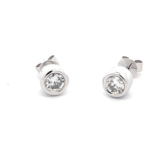Discover understated elegance with our Round Brilliant Cut Diamond Rub-over Style Solitaire Earrings. Crafted in 18ct white gold, these earrings feature sparkling round brilliant cut diamonds set in a stylish rub-over design, totalling 0.63cts. Experience timeless beauty and sophistication with every wear.