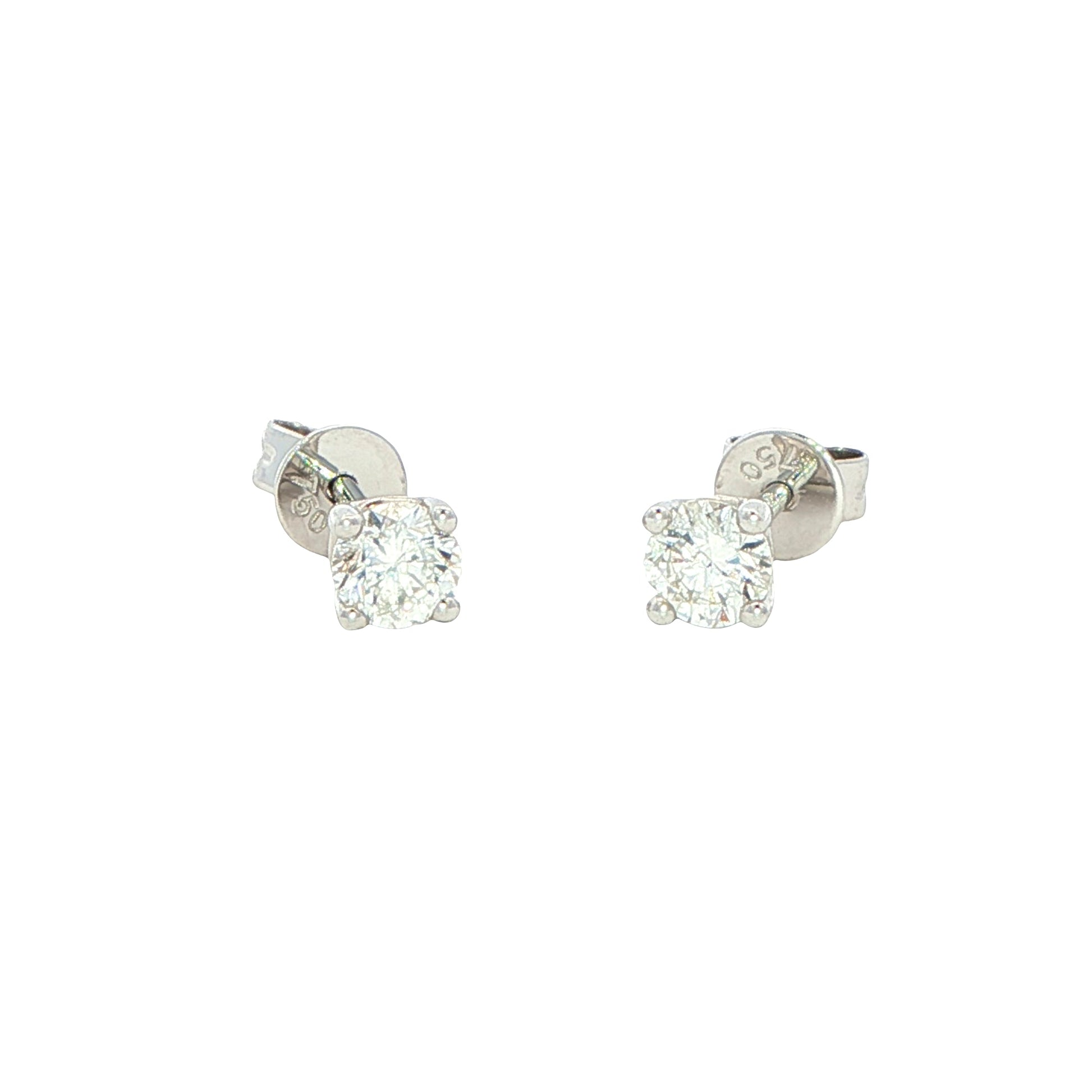 Expertly crafted with 18ct white gold stud backs and a secure 4 claw setting, these Round Brilliant Cut Diamond Solitaire Earrings total 0.50cts. Each ear dazzles with a sparkling 0.25ct diamond, radiating timeless elegance and sophistication. Elevate any look with these stunning earrings.