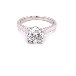 A stunning platinum solitaire featuring a round brilliant cut diamond in a timeless 4 claw setting. This expertly crafted design showcases the diamond's exceptional sparkle whilst maintaining a refined, understated elegance. Graded E colour for exceptional whiteness, this piece offers the perfect balance of sophistication and brilliance. The secure claw setting provides both security and an unobstructed view of the stone, making it an ideal choice for those seeking a classic engagement ring that pairs beautifully with wedding bands.
