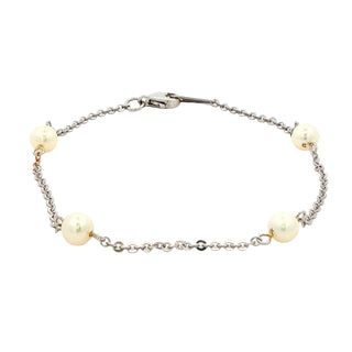This elegant bracelet features four cultured pearls set in 9ct white gold, offering a timeless and refined accessory. Measuring 7 inches, it provides a comfortable fit suitable for most wrists. Crafted with expert precision, this piece balances durability and classic design, making it an excellent choice for both everyday wear and special occasions.