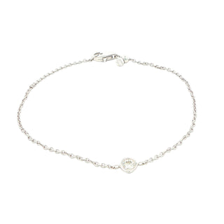 This elegant bracelet showcases a single round brilliant cut diamond secured in a refined rub-over setting, crafted from 9ct white gold. The rub-over design provides secure protection whilst allowing light to enhance the diamond's natural sparkle. The timeless combination of white gold and a solitaire diamond creates a versatile piece suitable for both everyday wear and special occasions.