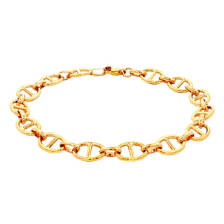 This 9ct yellow gold Marina Link Bracelet features unique, lightweight links that combine elegance with comfort. Measuring 7.5 inches, it offers an ideal fit for most wrists while adding a refined touch to any outfit. Its distinctive design ensures lasting appeal and versatility for both everyday wear and special occasions.
