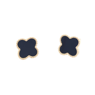 These 9ct yellow gold earrings feature a unique flower petal design with Onyx stones. A beautiful and elegant addition to any outfit, these stud earrings are crafted with precision and expert craftsmanship. Perfect for any occasion, these earrings are sure to make a statement.
