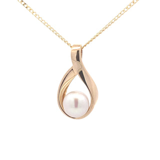 This 9ct yellow gold pendant features a classic teardrop design adorned with a lustrous fresh water pearl. Suspended from an 18-inch chain, it offers a refined and elegant look suitable for both everyday wear and special occasions. The combination of warm gold and natural pearl adds timeless sophistication to any outfit.